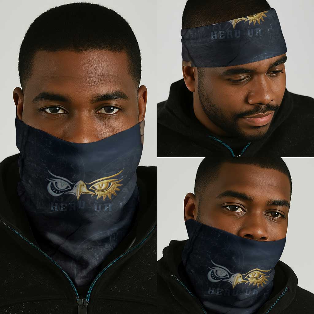 Heru-Ur Falcon Eyes Neck Gaiter Solar Disk Ancient Egyptian Mythology in Dark Stone