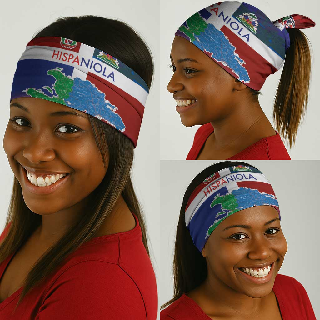 Hispaniola Neck Gaiter Haiti and Dominican Republic Emblems and Flag Style