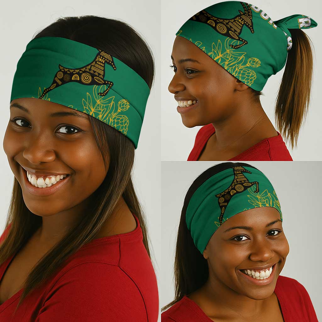 South Africa Springboks Neck Gaiter Tribal Antelope Design and Floral Accents