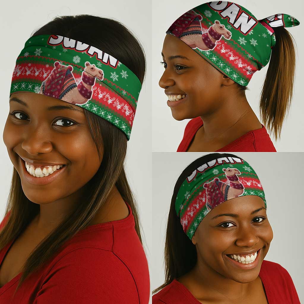 Sudan Christmas Neck Gaiter Green Red Xmas Camel Snowflake and Coat of Arms