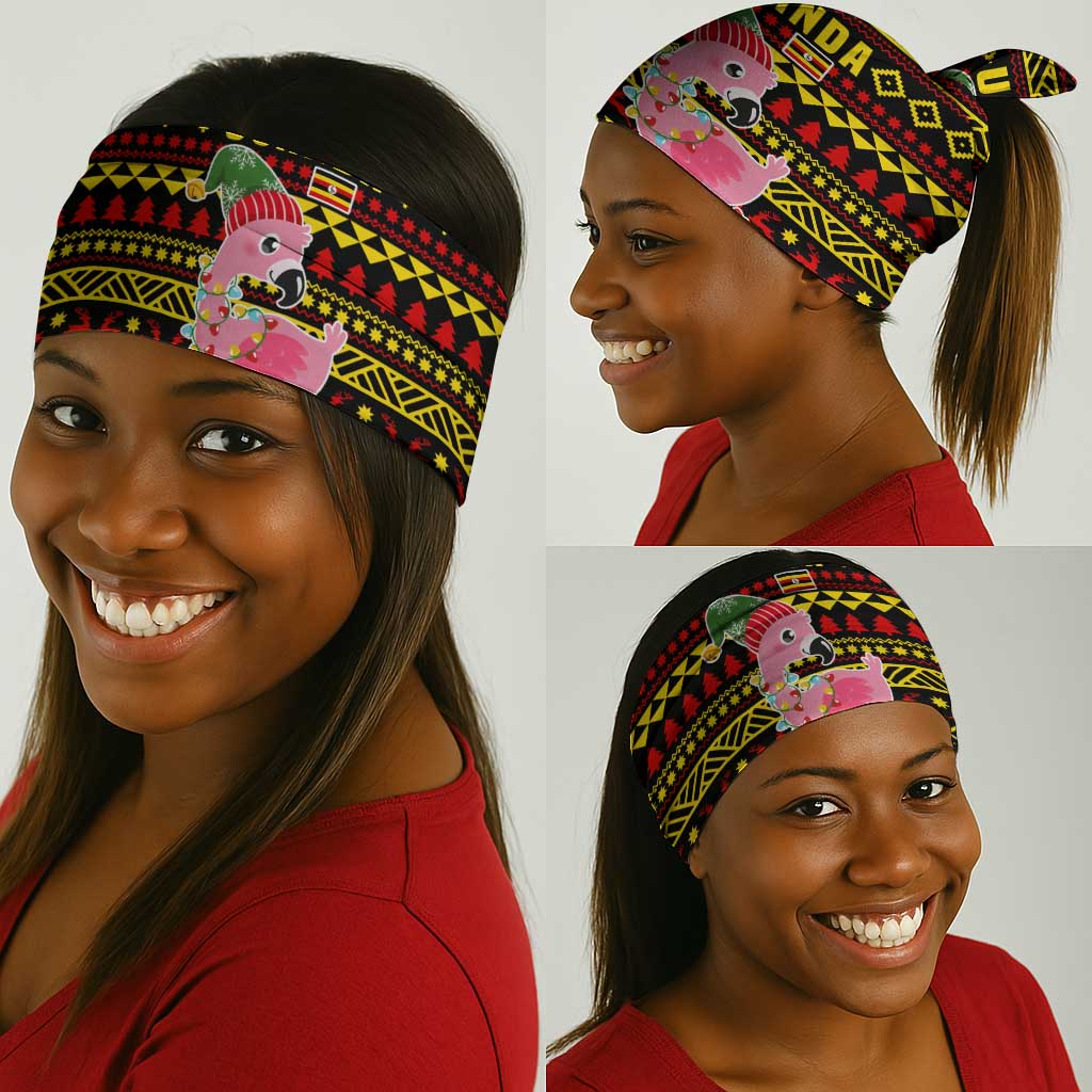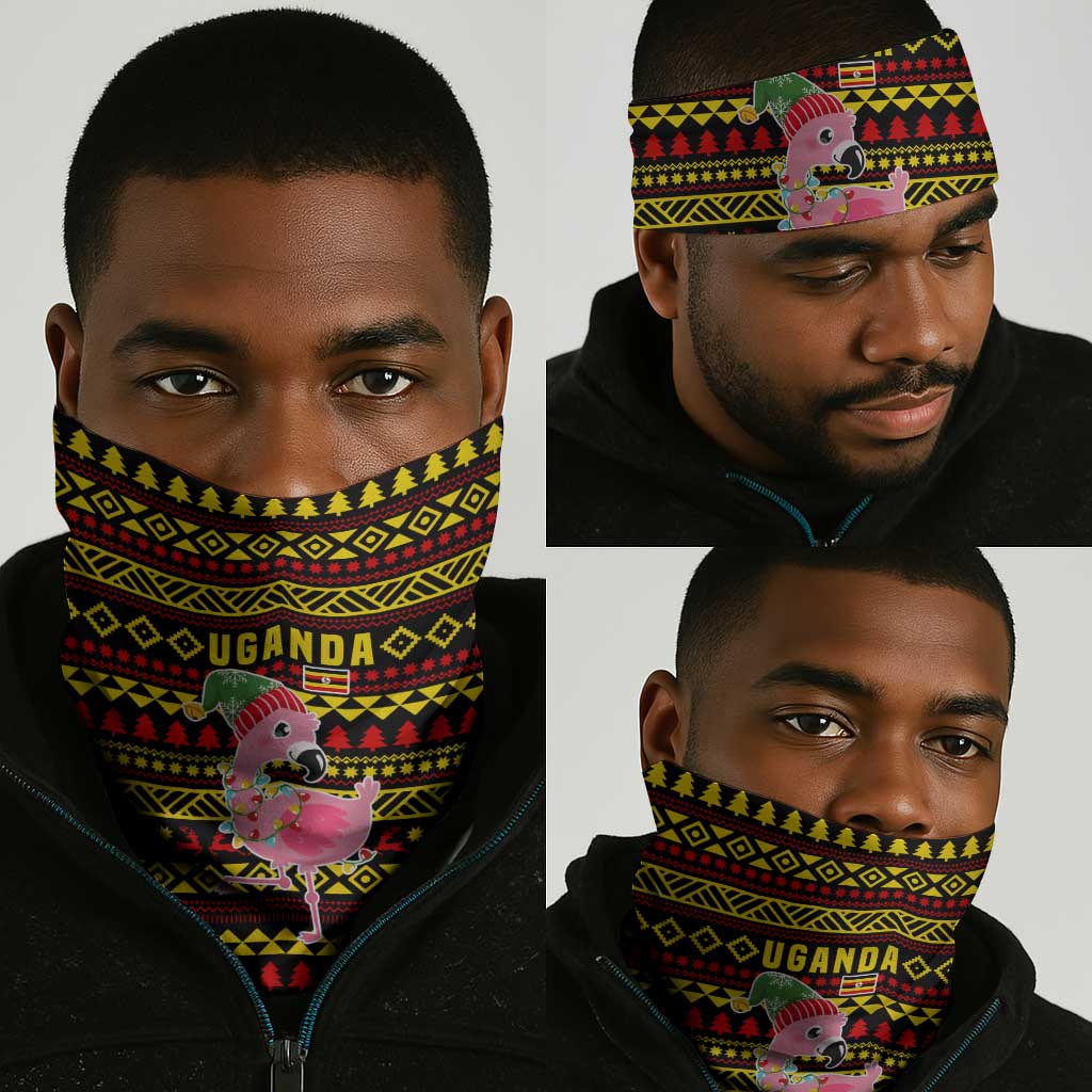 Uganda Christmas Neck Gaiter Flamingo Lights Uganda Flag and Black Red Yellow