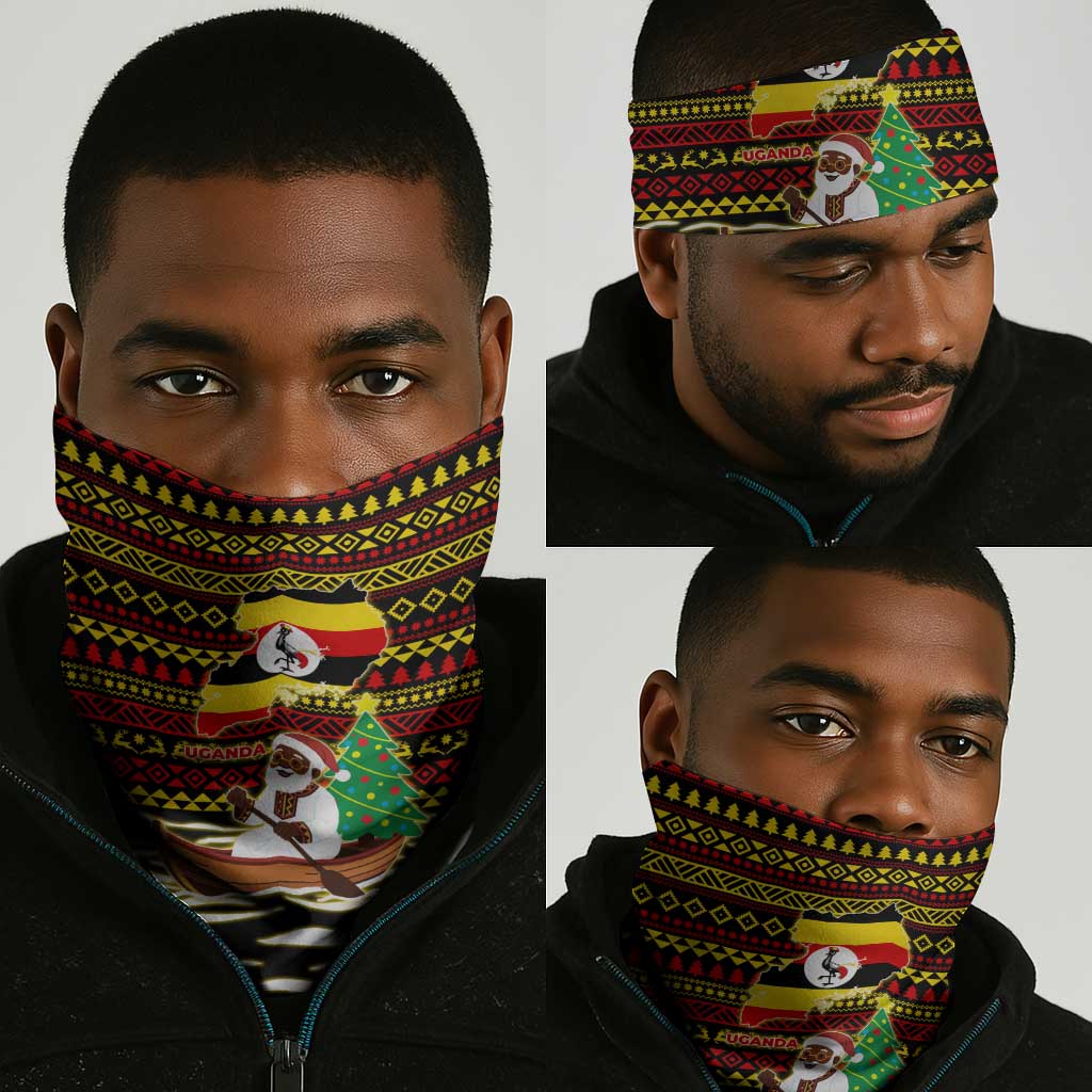 Uganda Christmas Neck Gaiter Santa in Canoe Christmas Tree Uganda Map Flag
