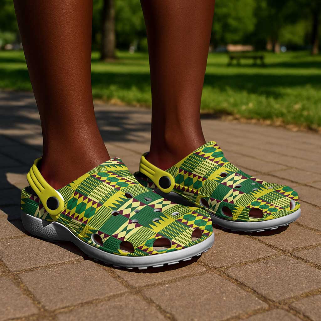 African Sika Fre Mogya Kente Pattern Clogs Shoes
