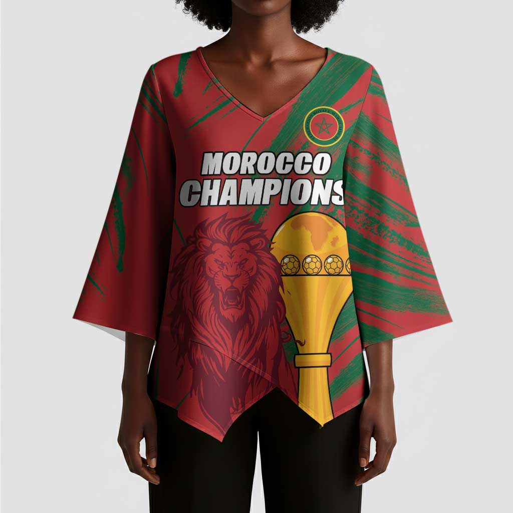 Custom Morocco Champions Football Kimono Sleeve Blouse Atlas Lions Grunge Motif