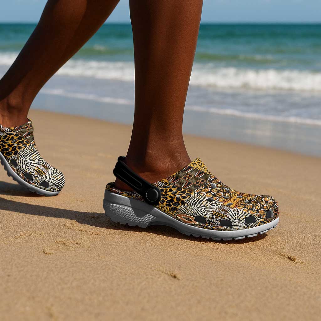 Wild Animal Skins Clogs Shoes African Tribal Pattern