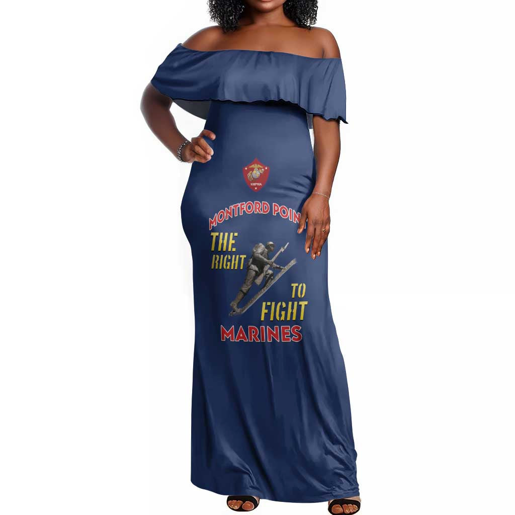 African American Heroes Off Shoulder Maxi Dress Montford Point Marines - Blue