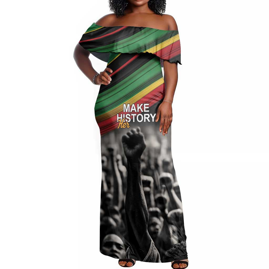 African-American History Month Off Shoulder Maxi Dress Black Power Hand Make His-Herstories