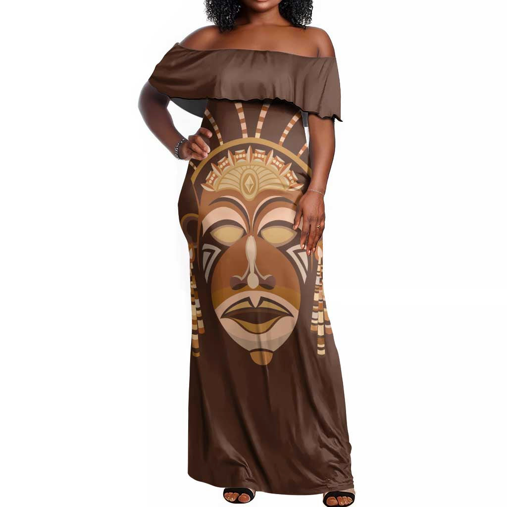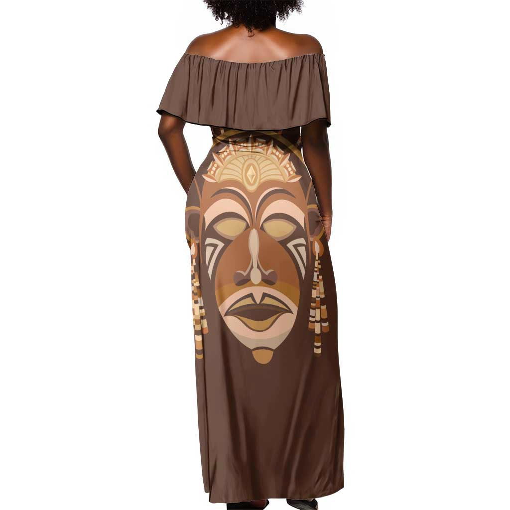 African Women Off Shoulder Maxi Dress Tribal Ethnic Mask
