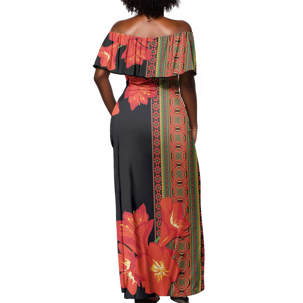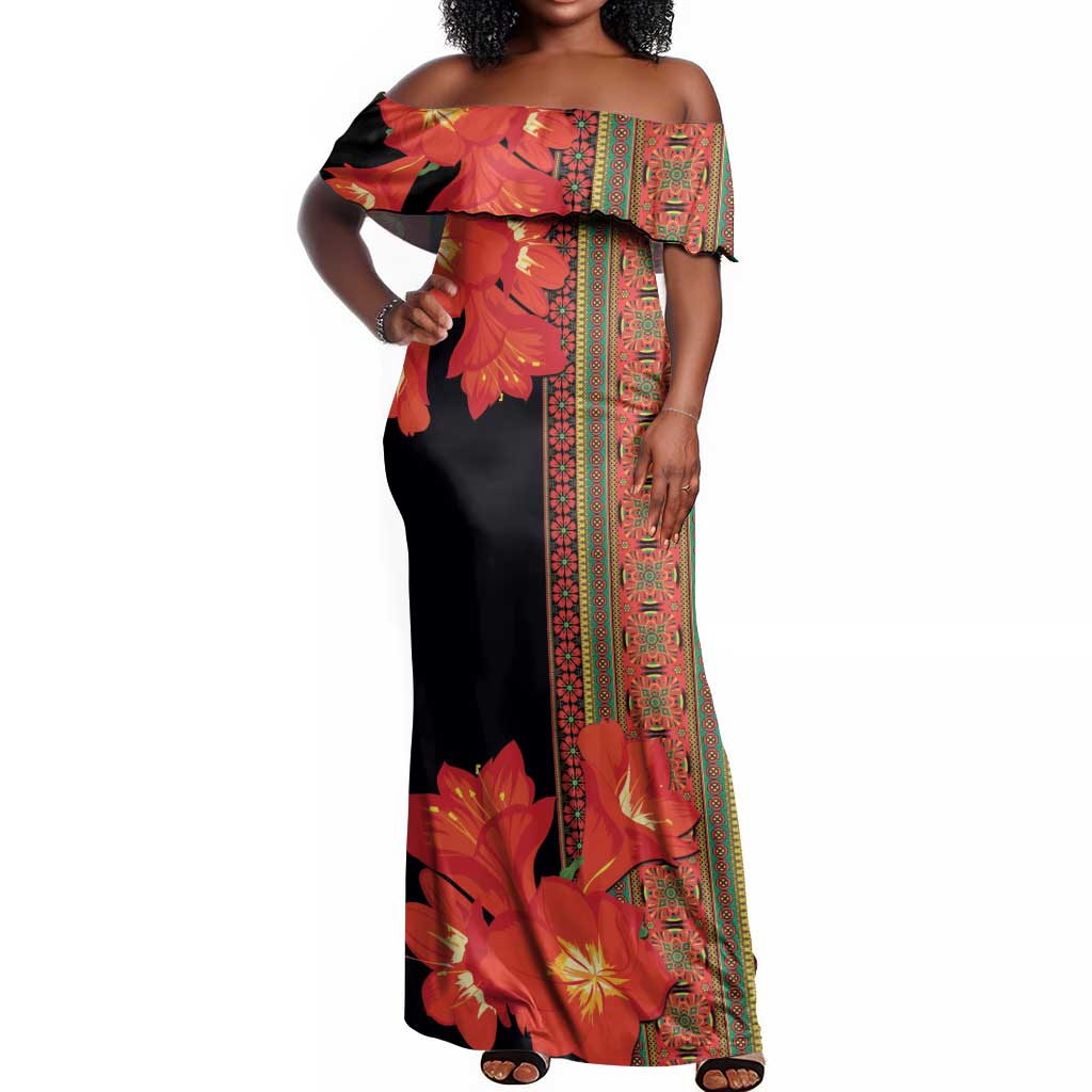 Afro Beauty Clivia Miniata Flowers Off Shoulder Maxi Dress