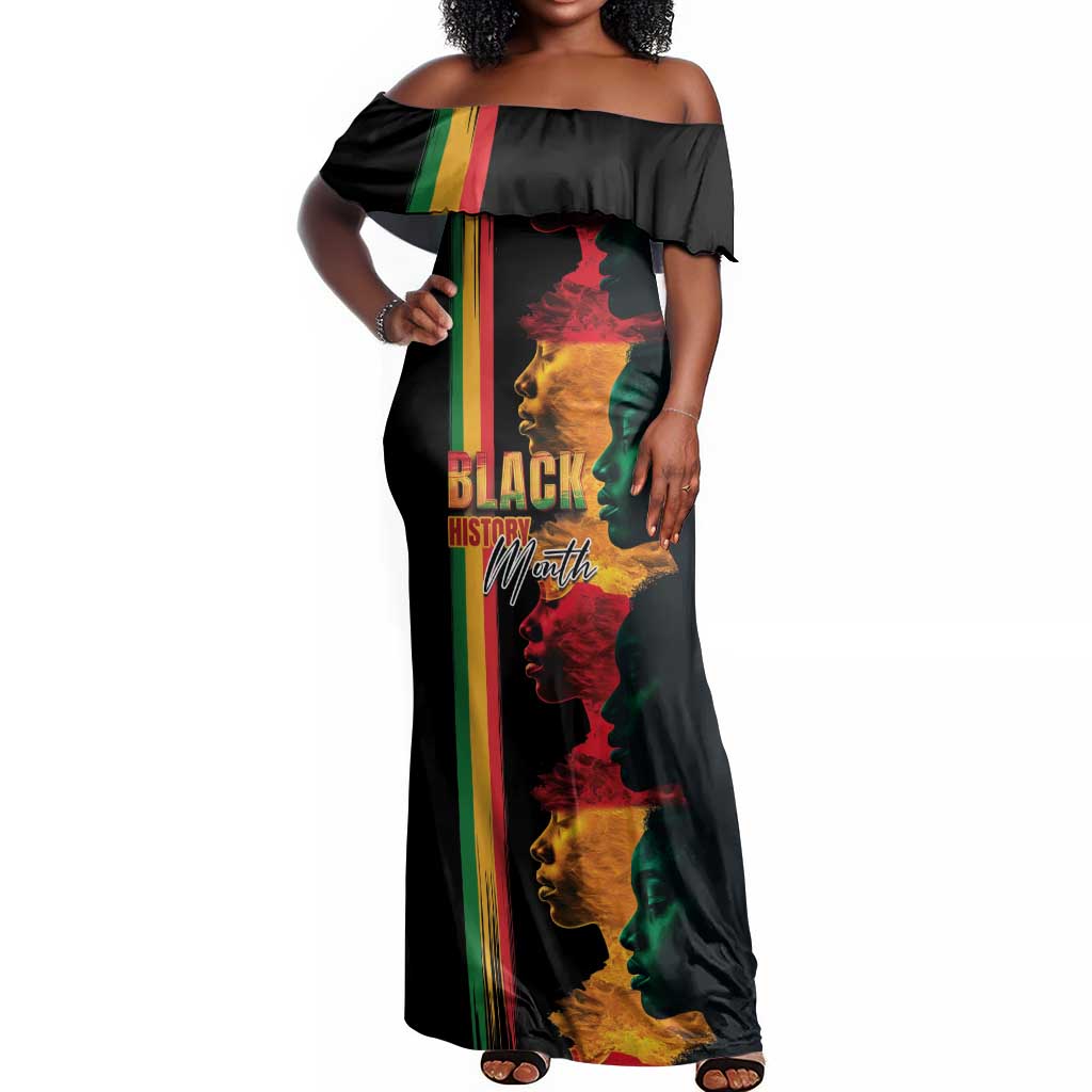 Afro - Black History Month Off Shoulder Maxi Dress Black Soul - I'm Black Every Month