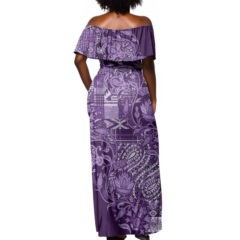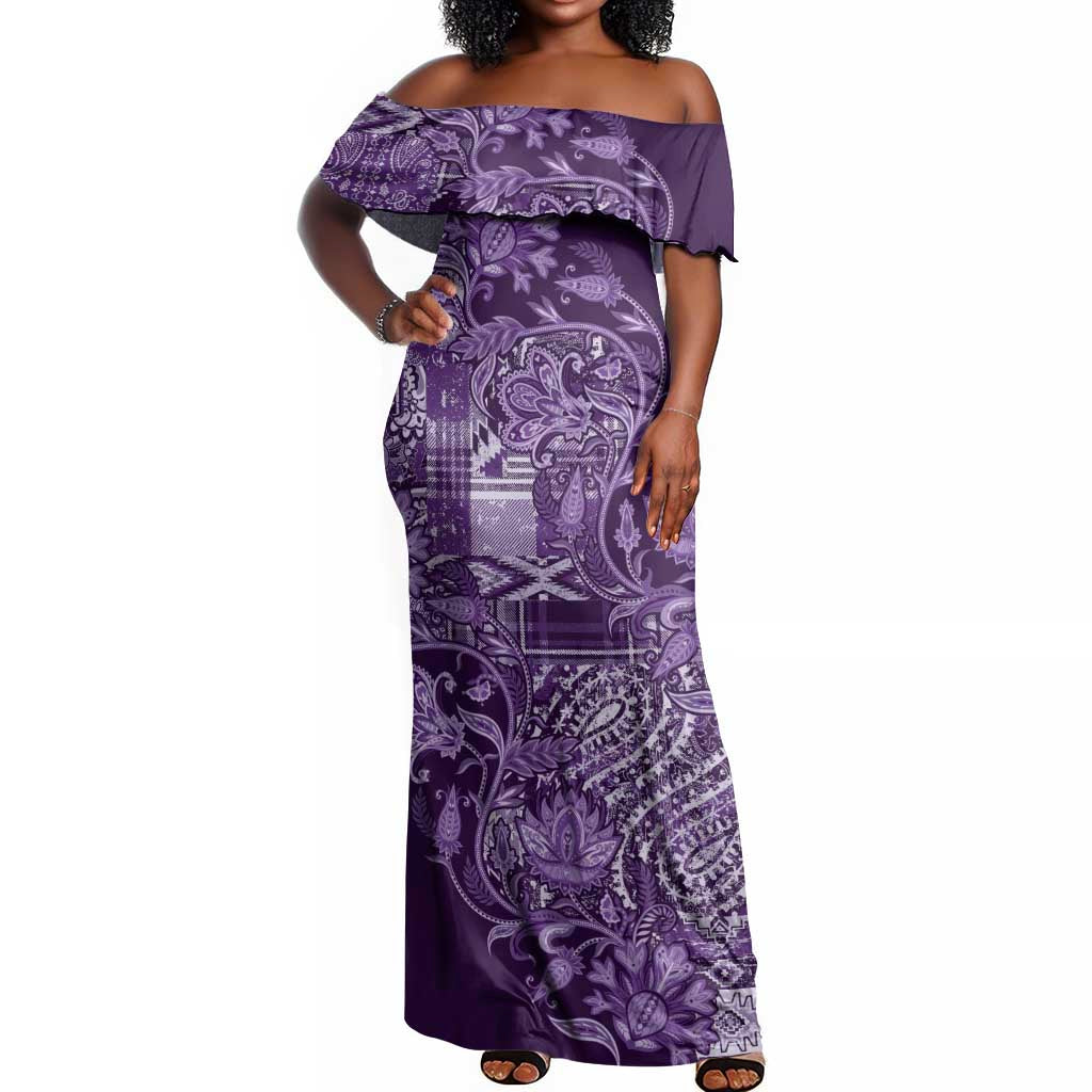 Afro Floral mix Maasai Shuka Off Shoulder Maxi Dress Purple Moitf