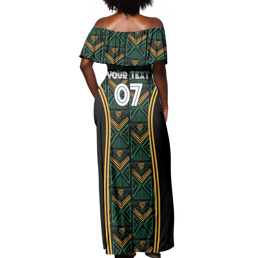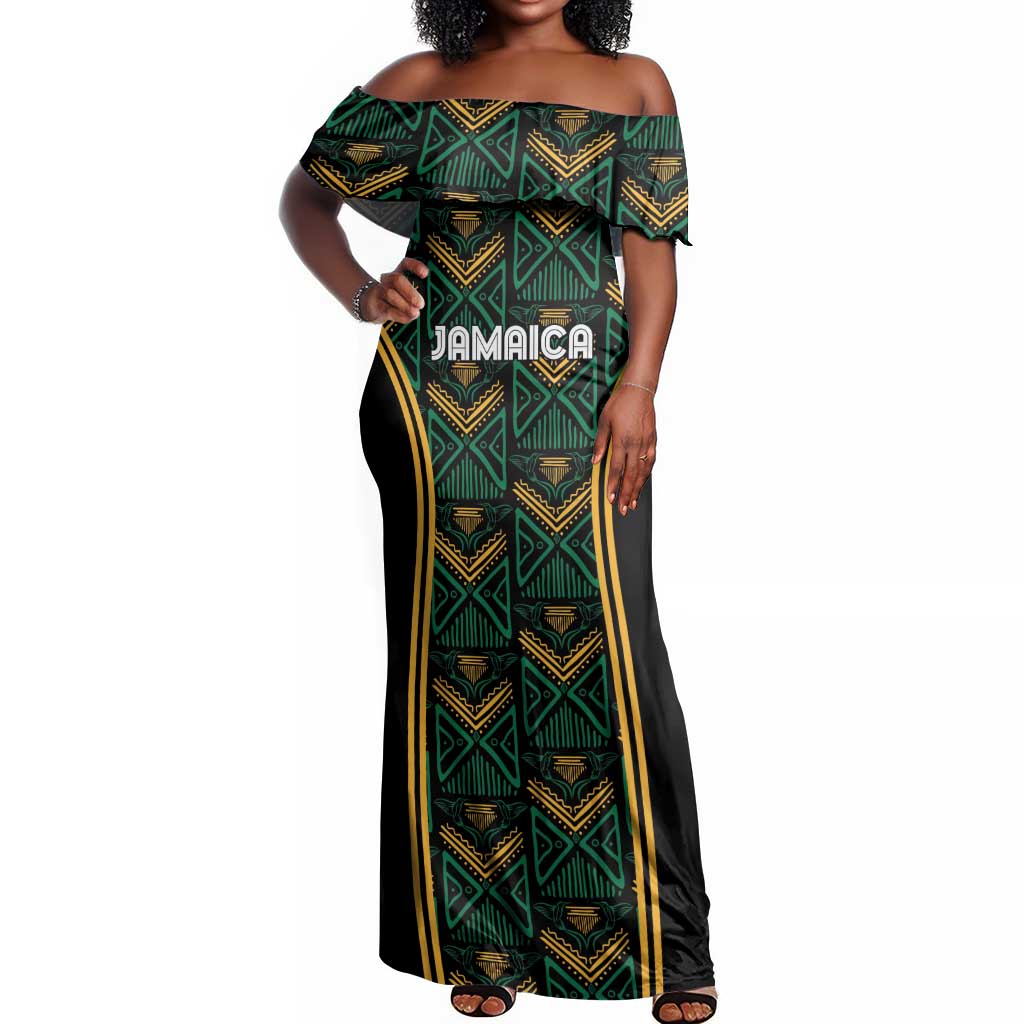 Afro-Jamaica Custom Off Shoulder Maxi Dress Reggae Boyz Ethnic Motifs