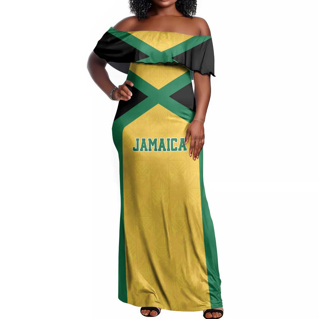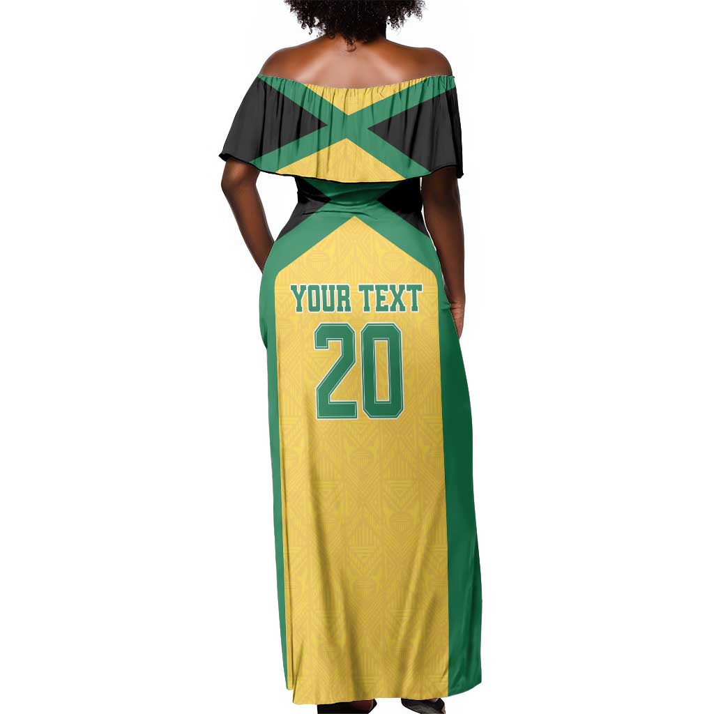 Afro-Jamaicans Football Custom Off Shoulder Maxi Dress Gold Ethnic Motifs
