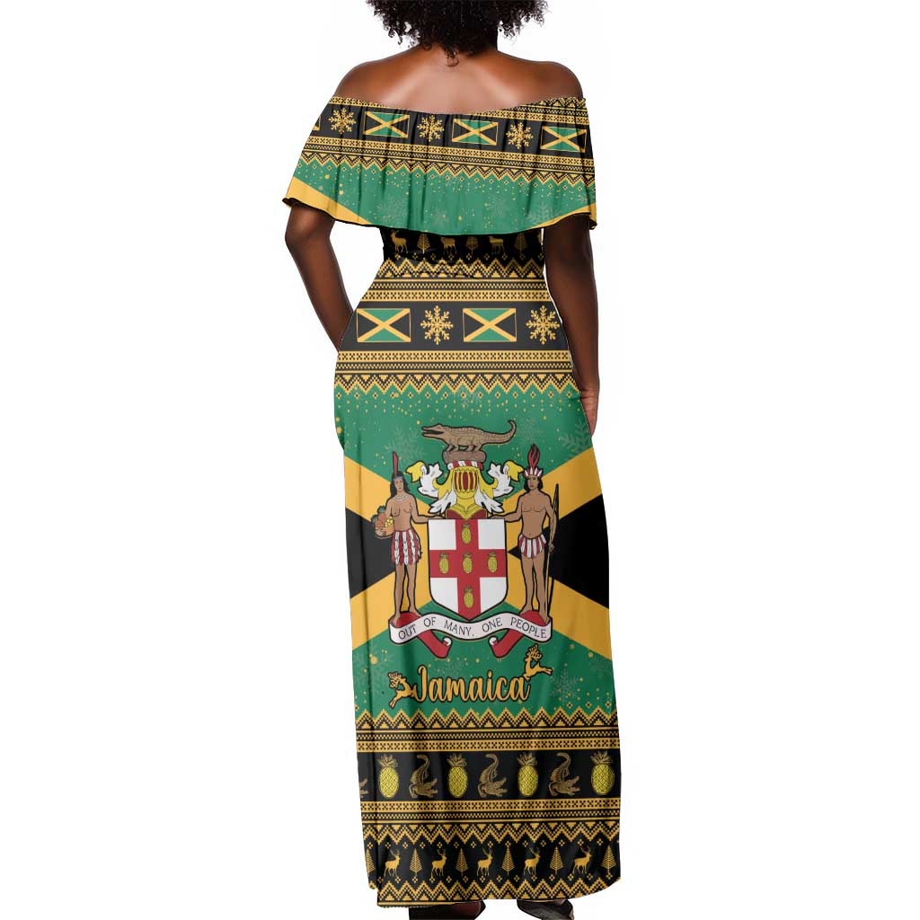 Afro-Jamaicans Off Shoulder Maxi Dress Coat Of Arms - Merry Christmas