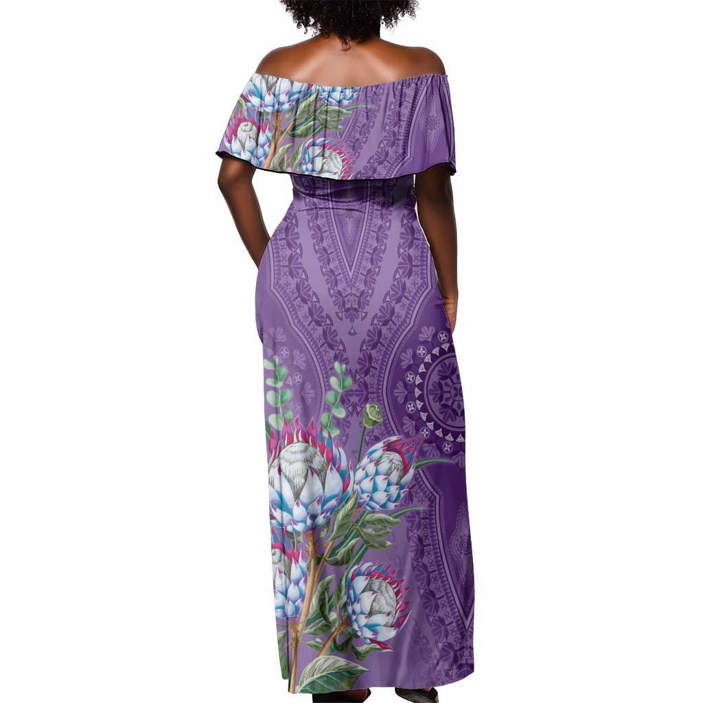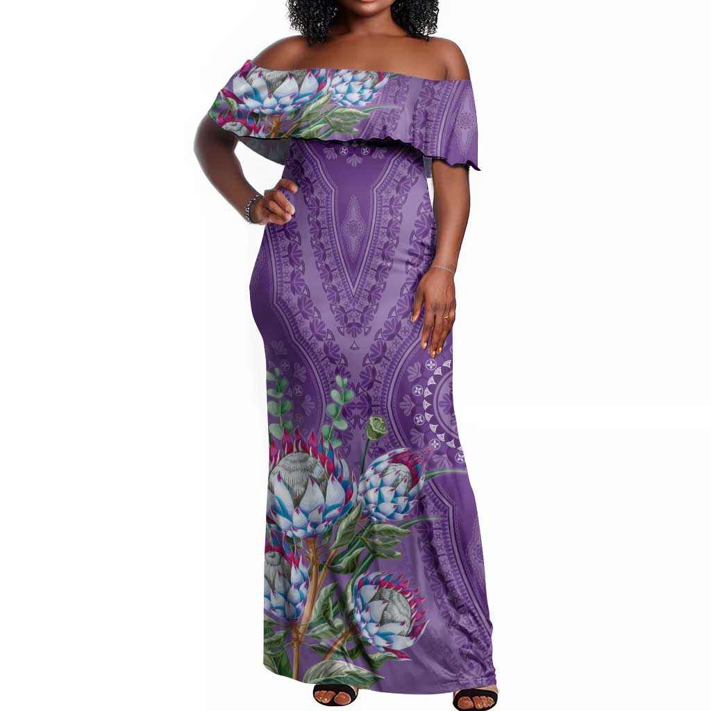 Afro King Proteas Dashiki Motif Off Shoulder Maxi Dress Violet Style