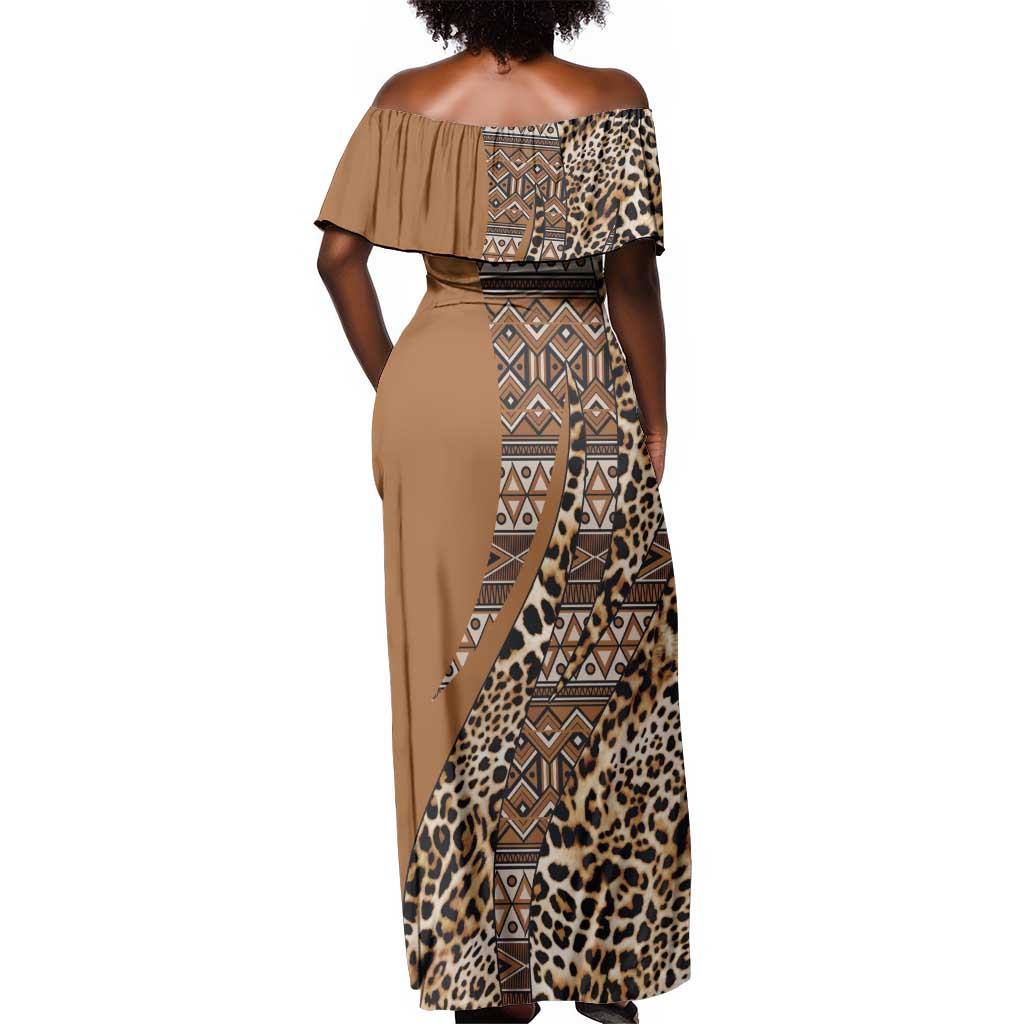 Afro Leopard Mix Native Tribal Pattern Off Shoulder Maxi Dress