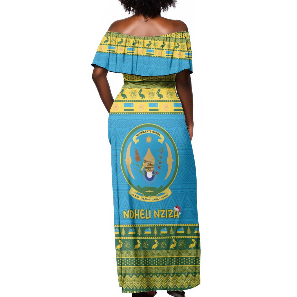 Afro Rwanda Christmas Off Shoulder Maxi Dress Noheli Nziza Coat Of Arms - African Pattern