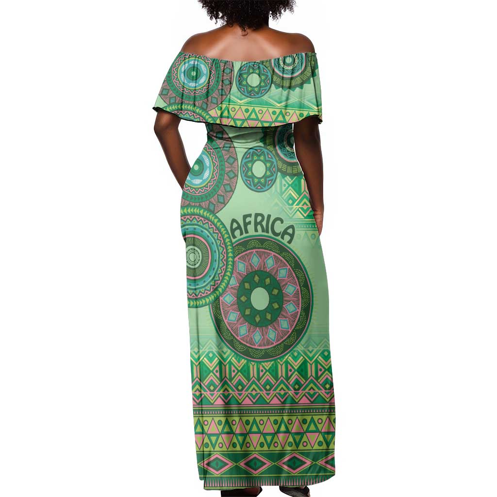 Afro Tribal Traditional Pattern Off Shoulder Maxi Dress Green Motif