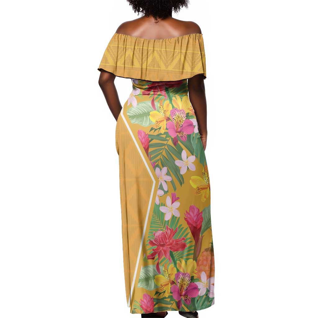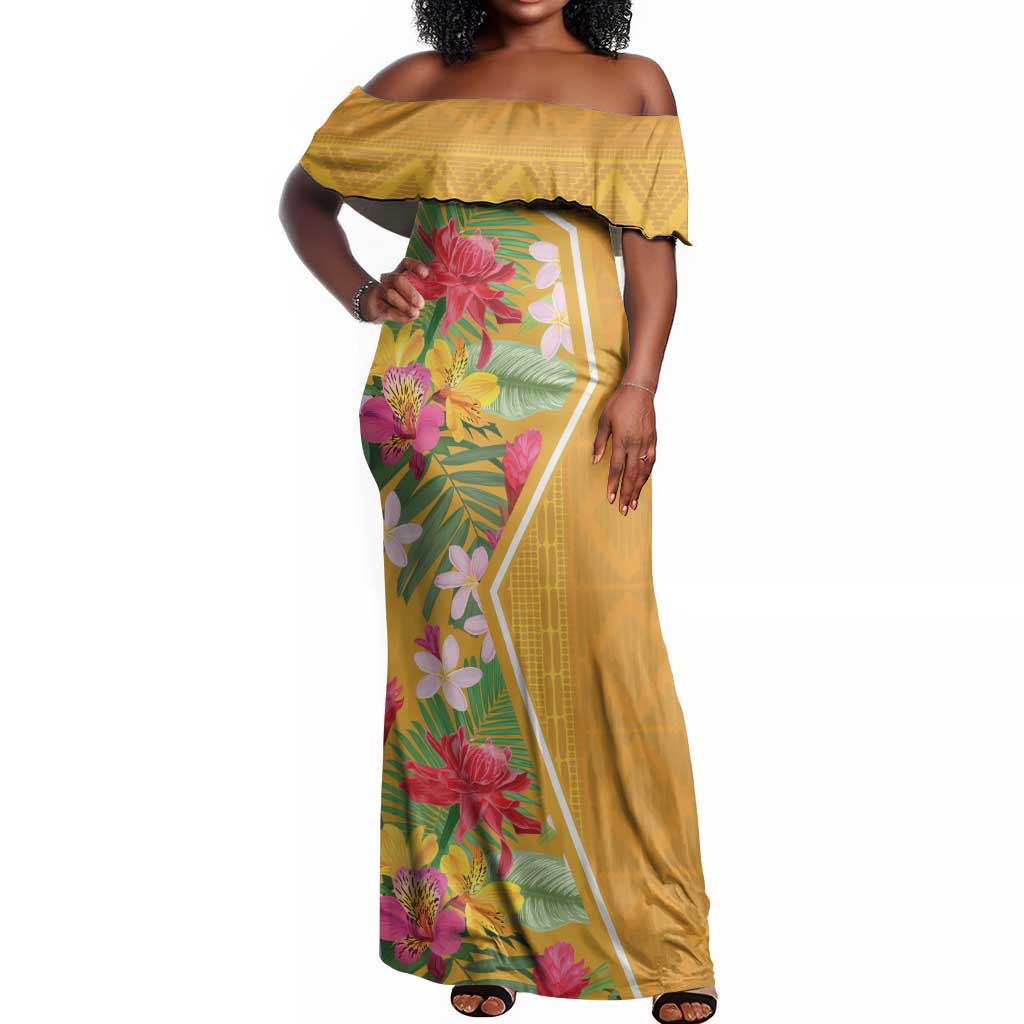 Afro Tropical Flowers Off Shoulder Maxi Dress Yellow Version