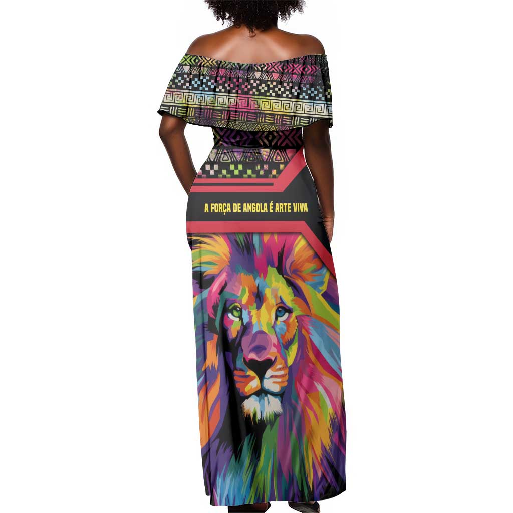 Angola Off Shoulder Maxi Dress Multicolor Tribal Design and Vibrant Lion