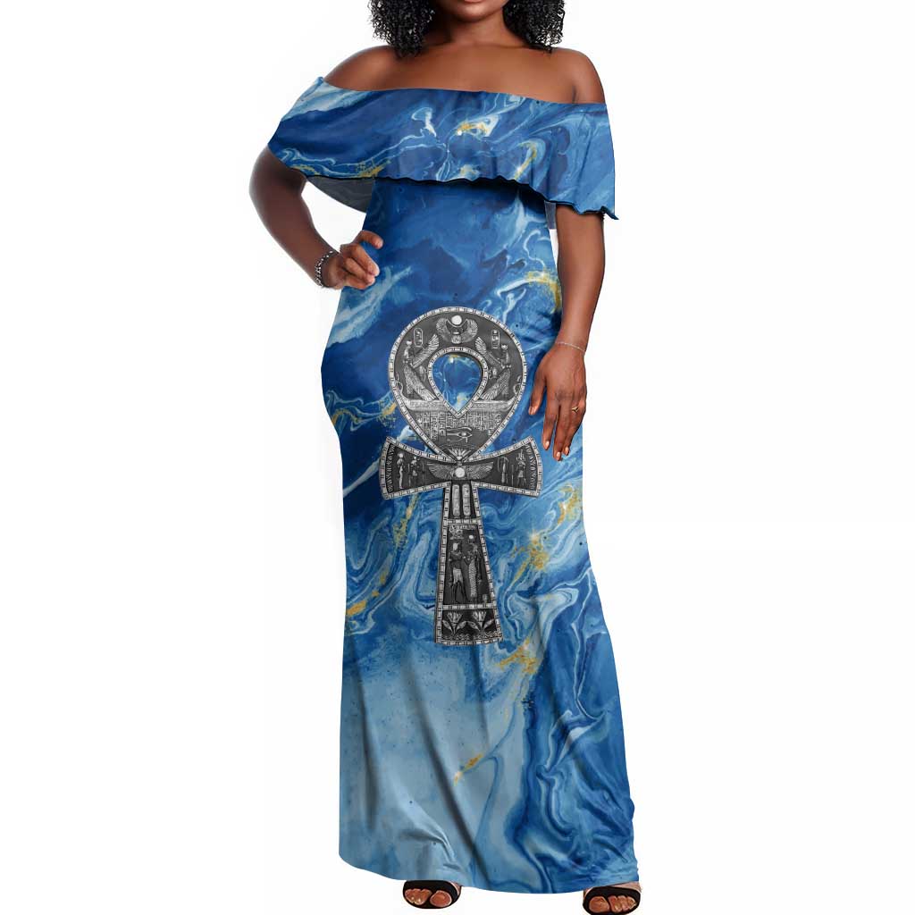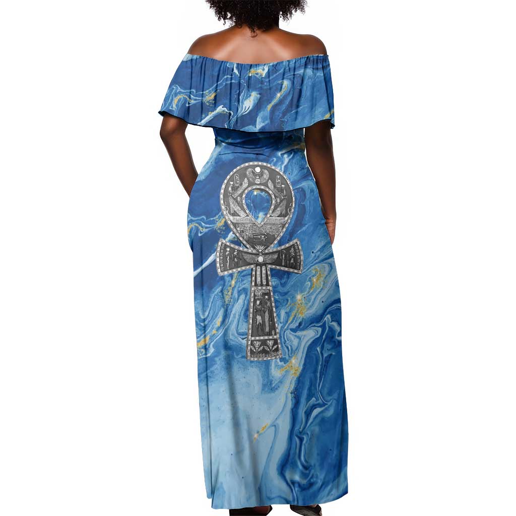 Ankh On Blue Off Shoulder Maxi Dress Pan African