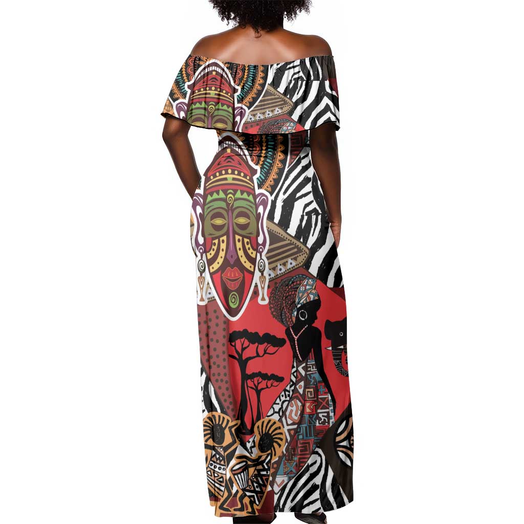 Beautiful African Women Ethnic Motifs Off Shoulder Maxi Dress