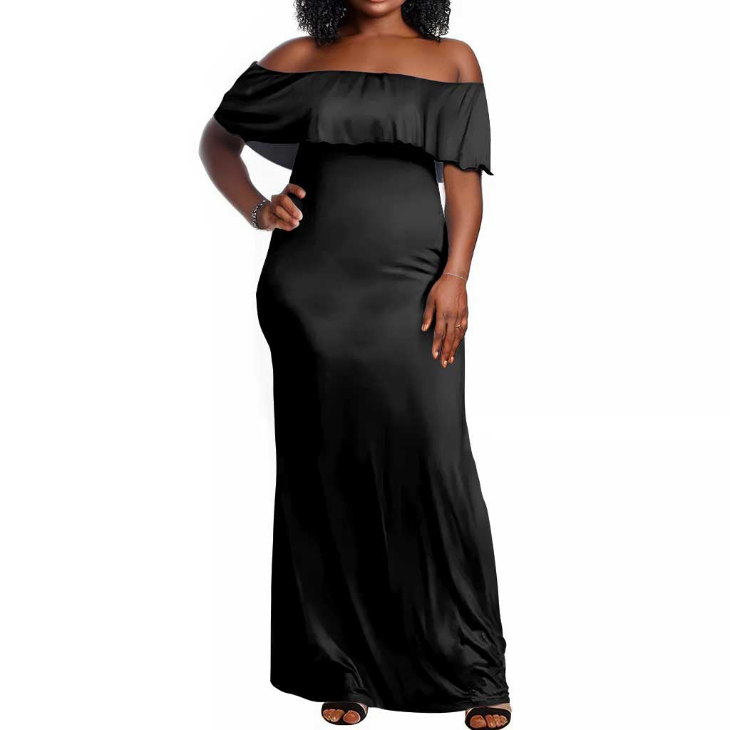 Enjoy the perfect blend of comfort, style, and unique design with our custom-designed Off Shoulder Maxi Dresses.