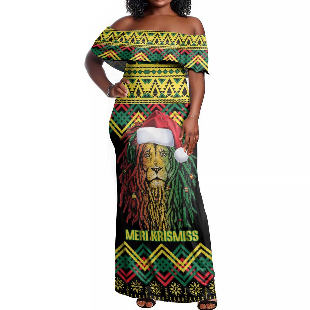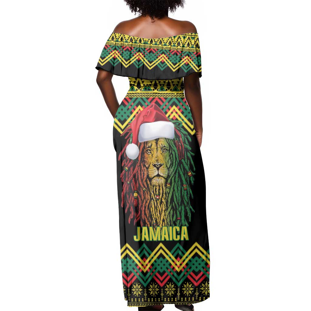 Black Jamaican Christmas Off Shoulder Maxi Dress Reggae Lion With Kente Pattern