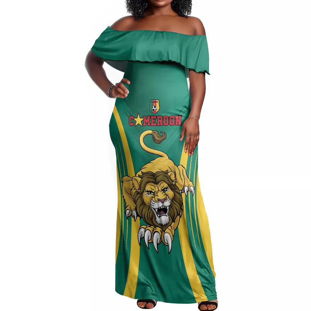 Custom Afro Cameroun Football Off Shoulder Maxi Dress Go Les Lions Indomptables