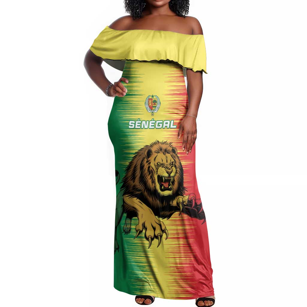 Custom Afro Senegal Football Off Shoulder Maxi Dress Lions of Teranga - Flag Style