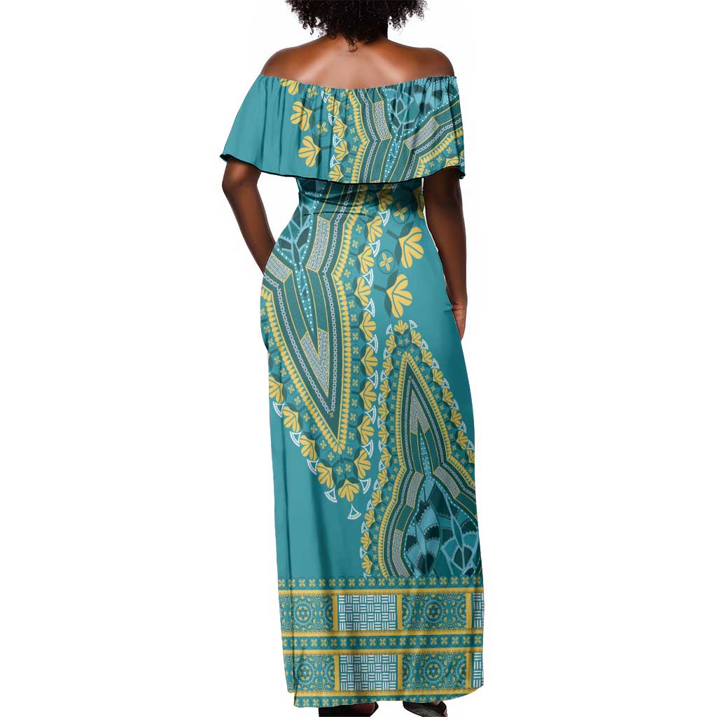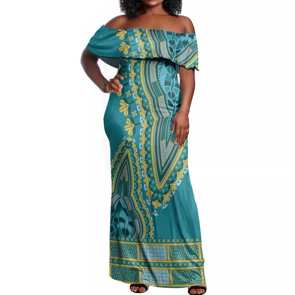 Dashiki Off Shoulder Maxi Dress Luxury Afro - Teal