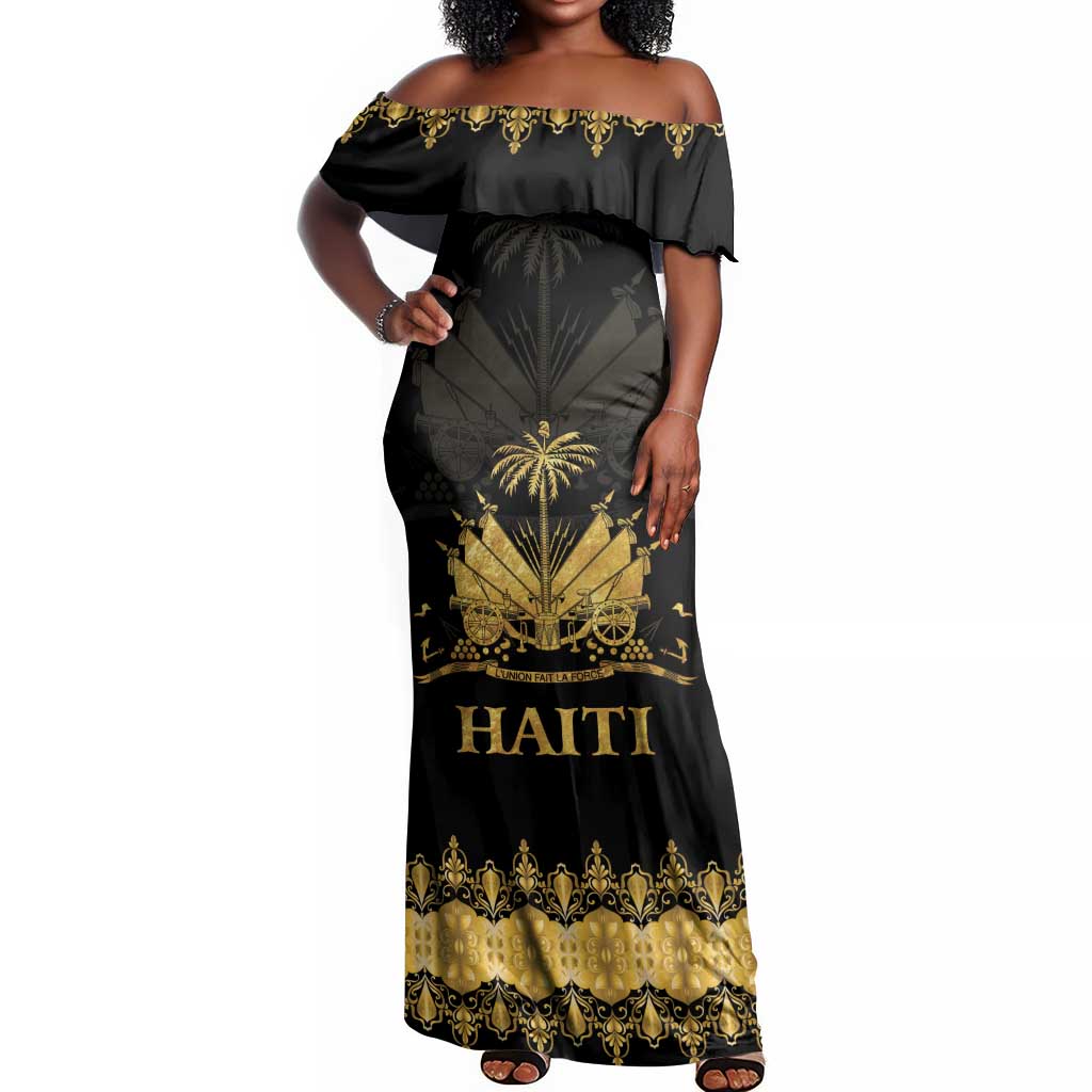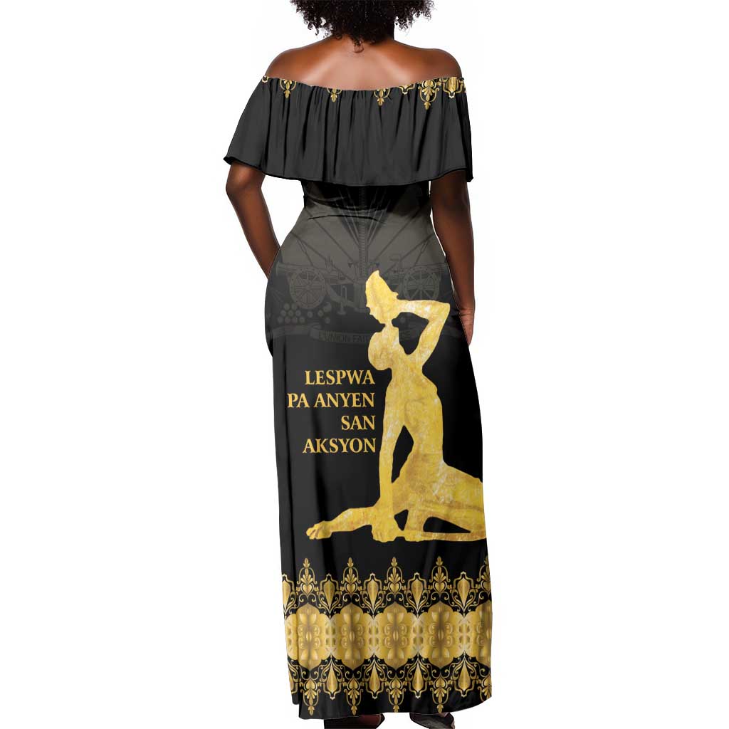 Haiti Neg Marron Off Shoulder Maxi Dress Lespwa pa anyen san aksyon - Gold