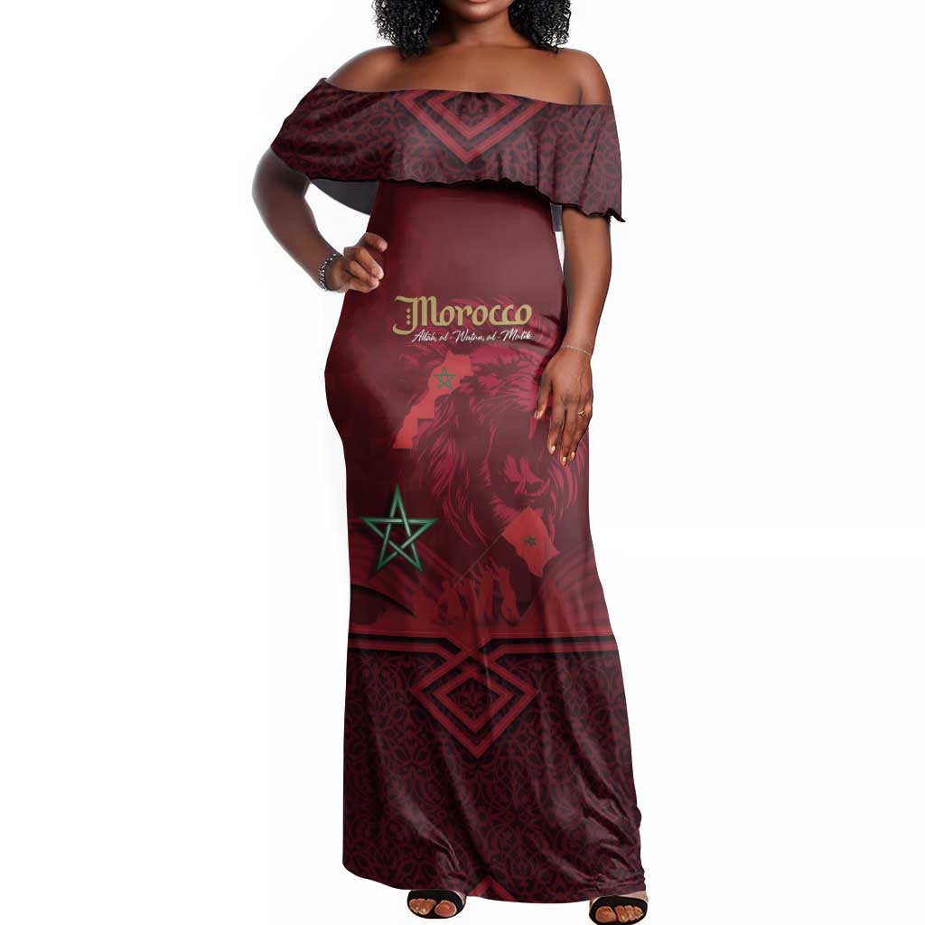 Happy Proclamation of Independence of Morocco Off Shoulder Maxi Dress Barbary Lion's Roar - Fight for Free and Peace