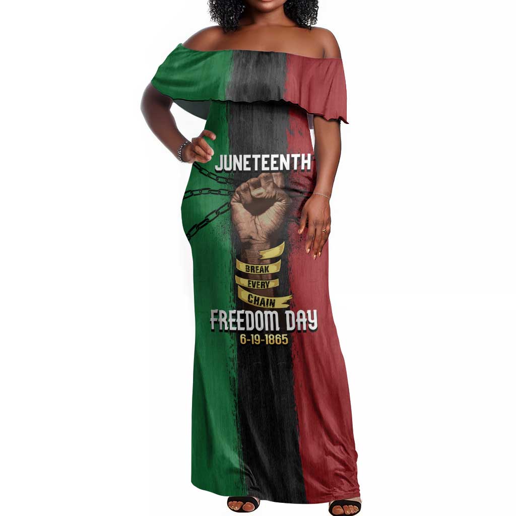 Juneteenth Freedom Day Off Shoulder Maxi Dress Black Pride Month