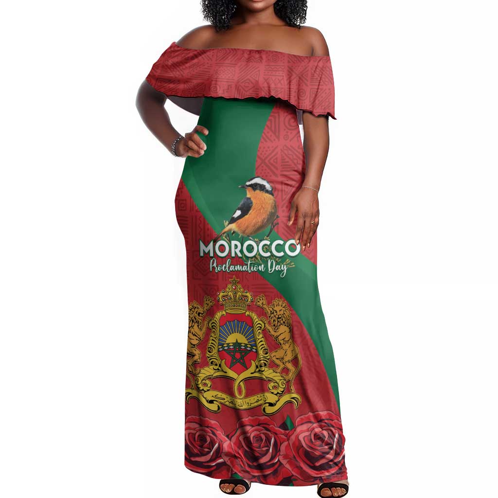 Personalised Afro Morocco Off Shoulder Maxi Dress Happy Proclamation Day - African Pattern