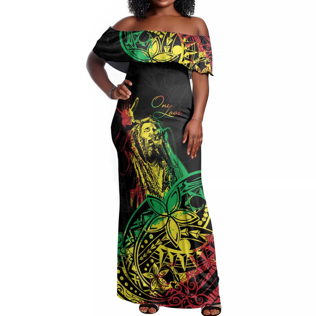 Personalised Jawaiian Reggae Off Shoulder Maxi Dress Afro-Polynesian Style
