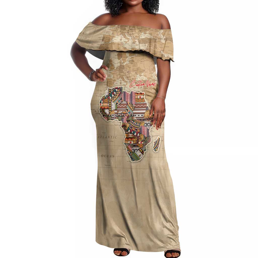 Personalized Africa On World Map Off Shoulder Maxi Dress