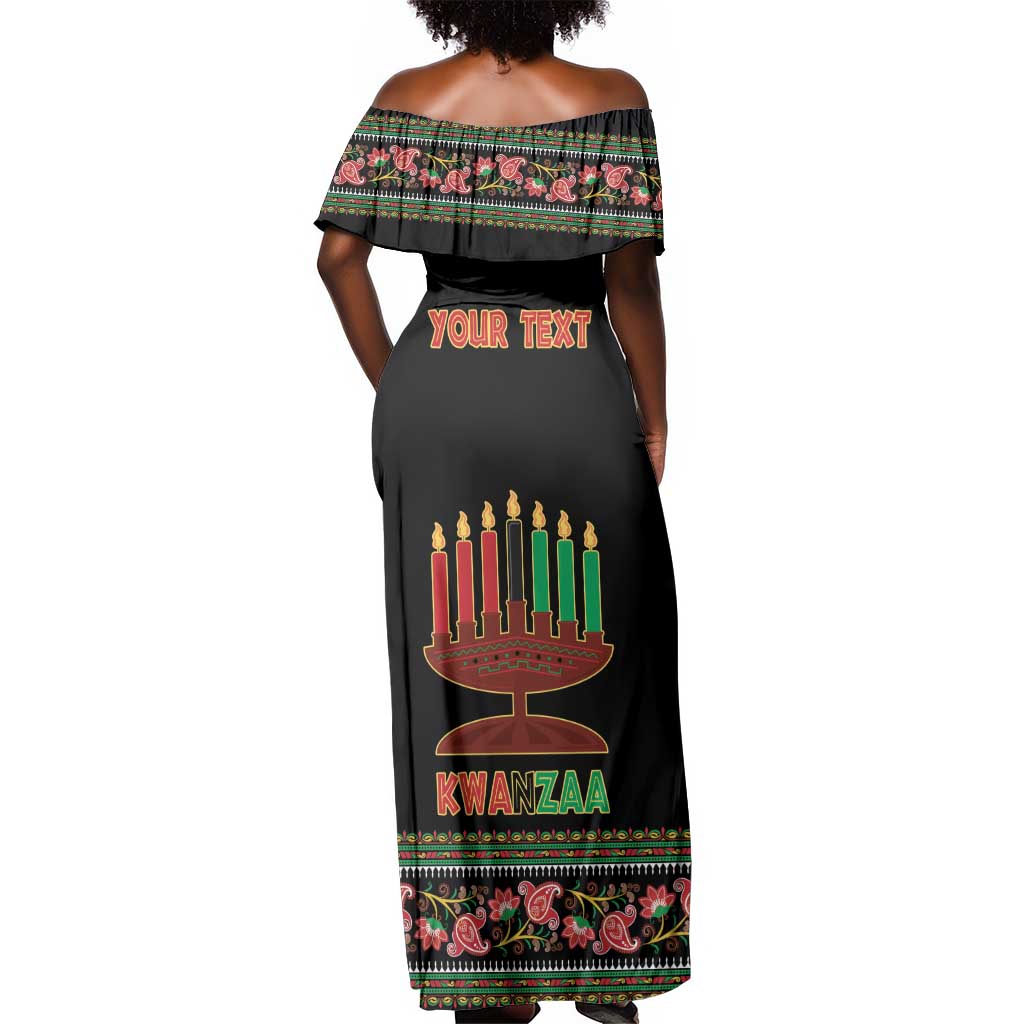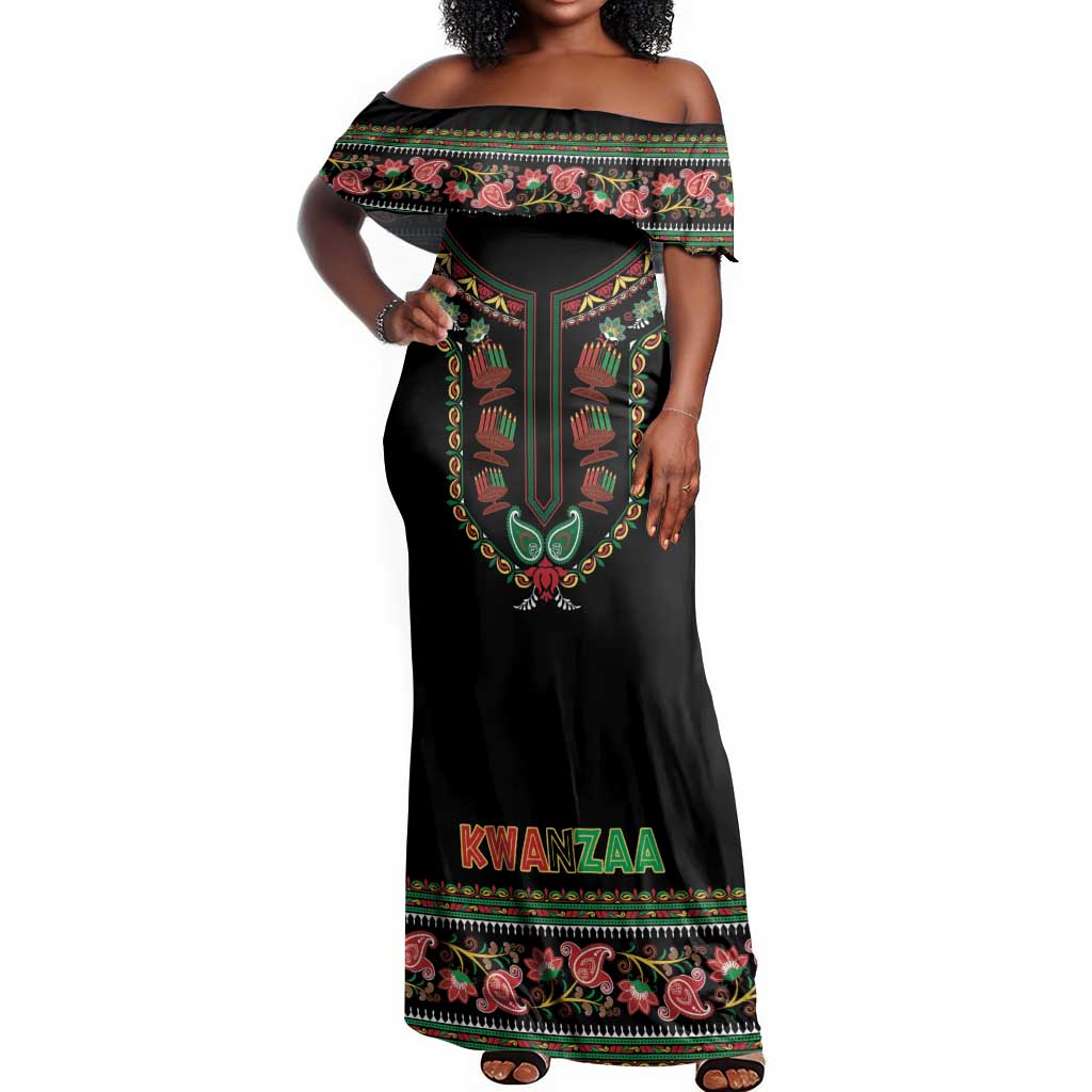 Personalized Afro-American Kwanzaa Off Shoulder Maxi Dress Dashiki Mix Paisley Pattern