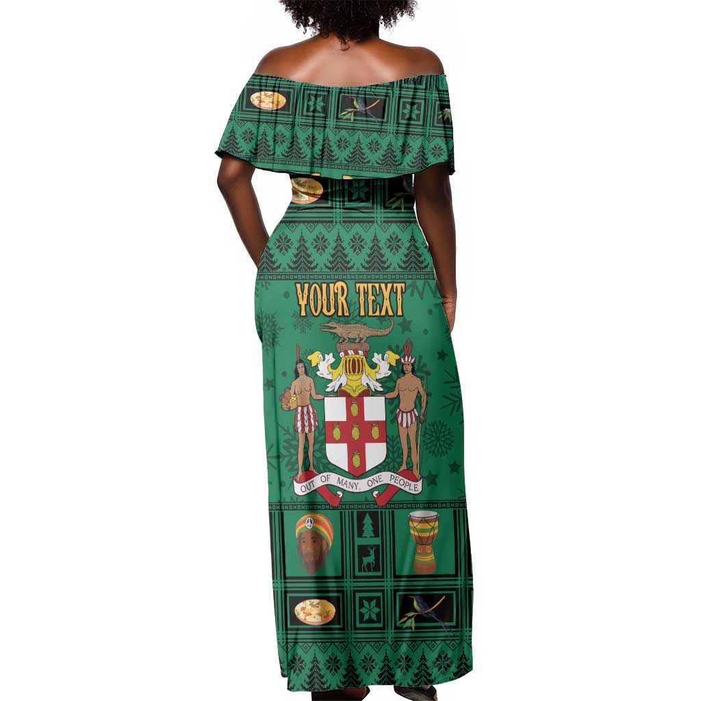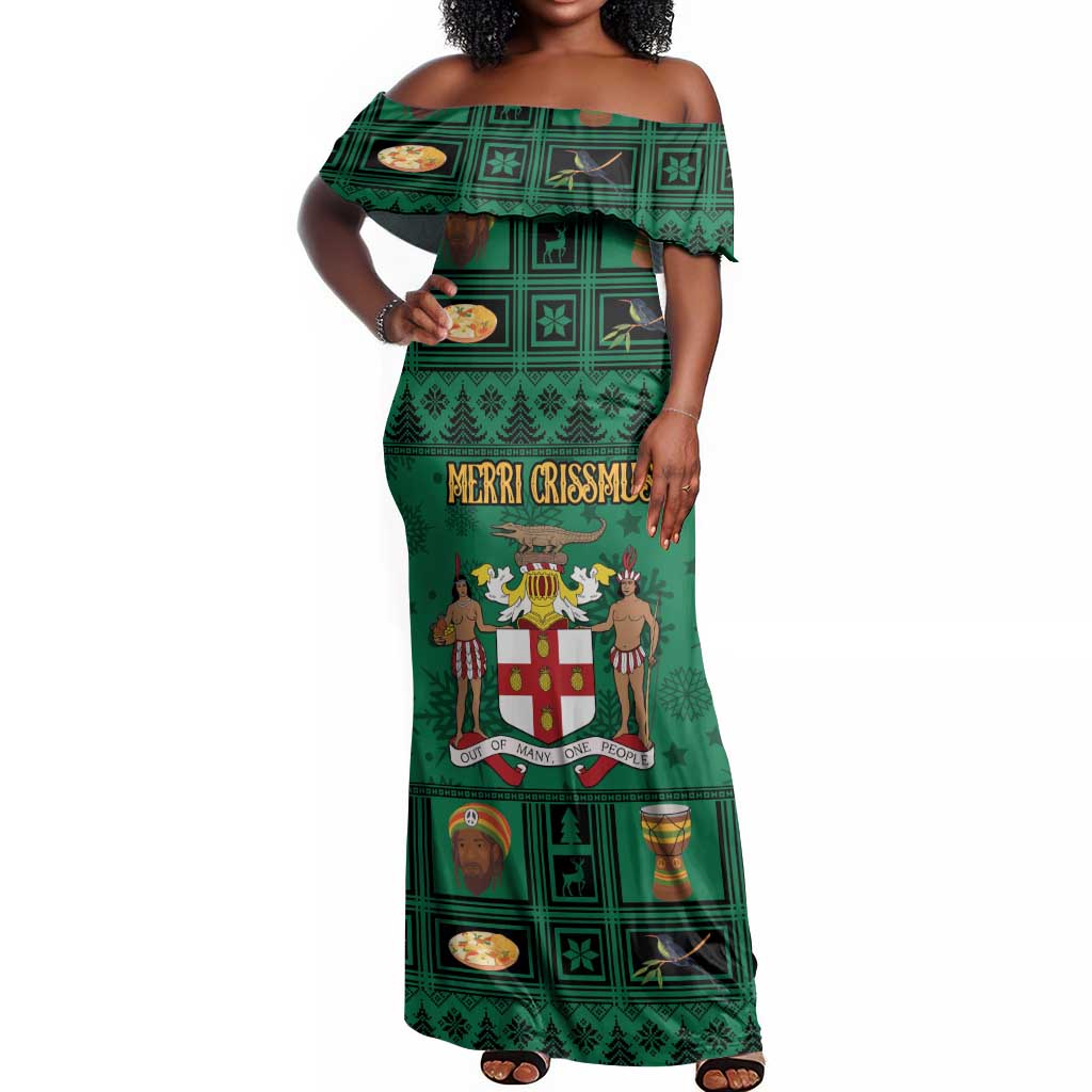 Personalized Afro-Jamaicans Merri Crissmuss Off Shoulder Maxi Dress Coat Of Arms - Xmas