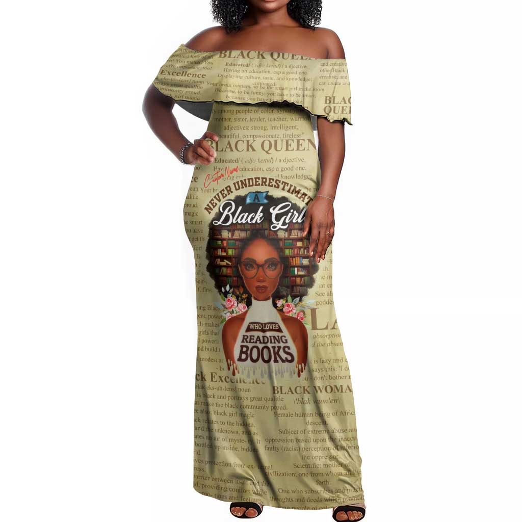 Personalized Black Girl African Off Shoulder Maxi Dress Never Underestimate A Book Lover
