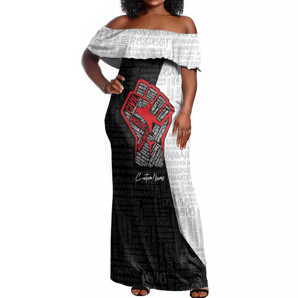 Personalized Civil Rights Movement Justice Fist Off Shoulder Maxi Dress DT02