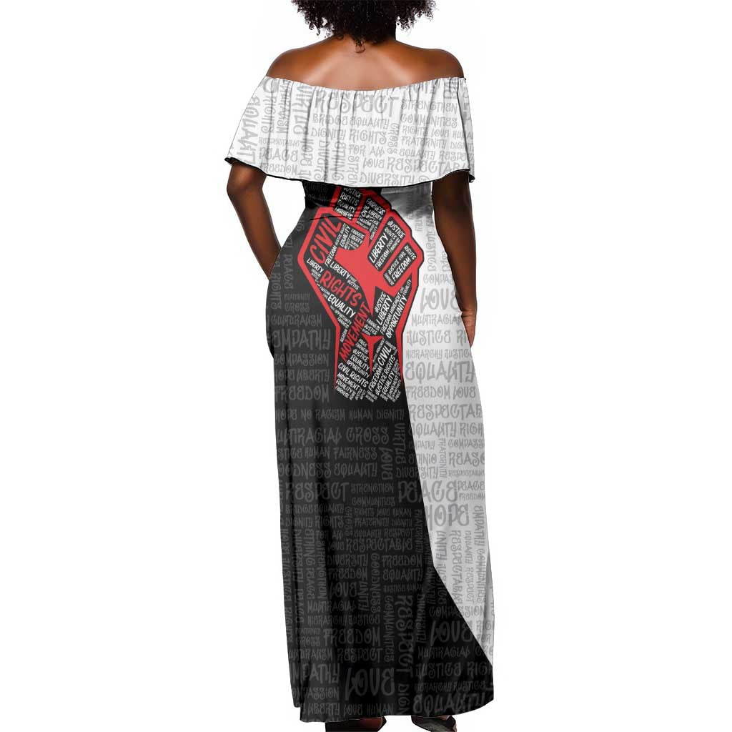 Personalized Civil Rights Movement Justice Fist Off Shoulder Maxi Dress