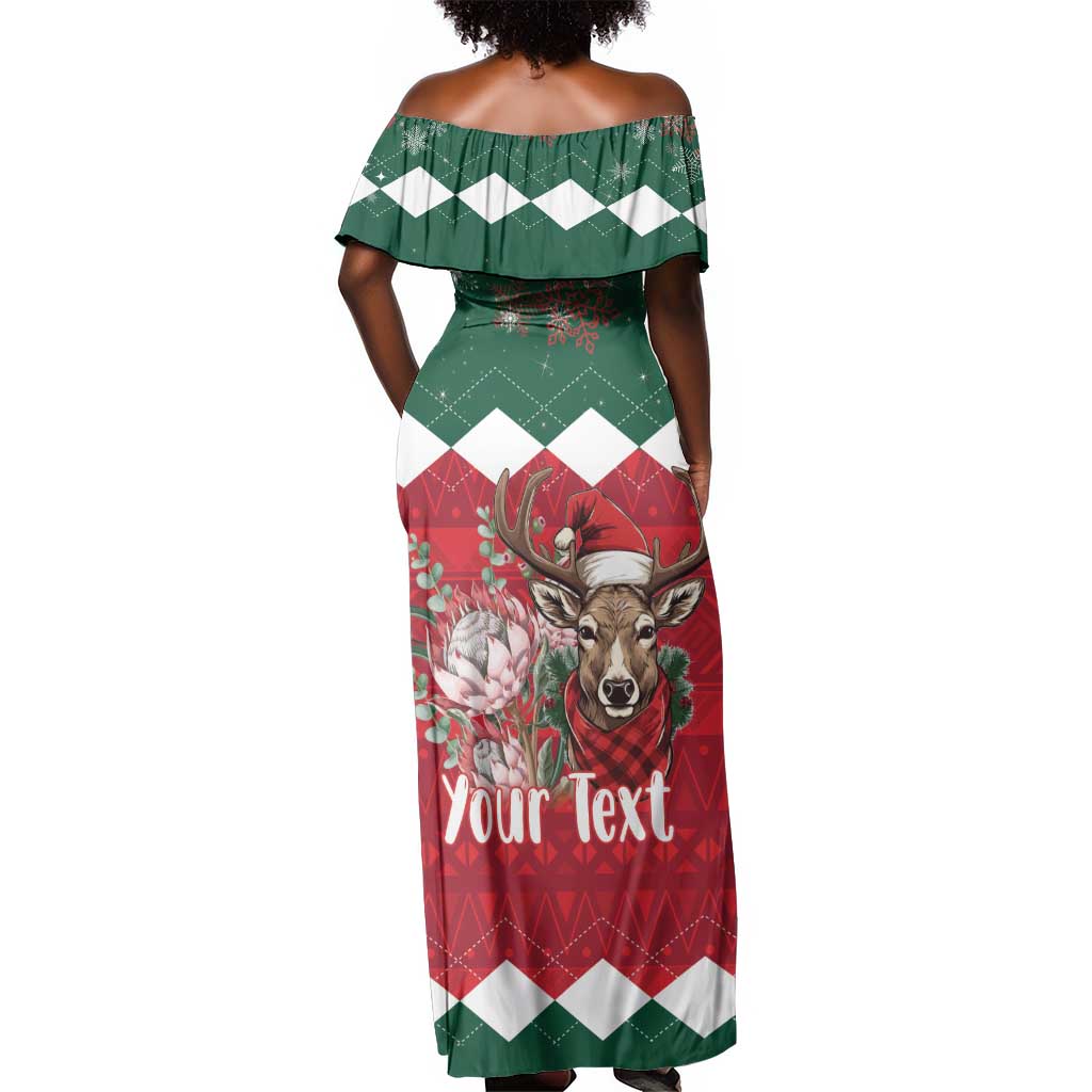 Personalized South Africa Merry Christmas Off Shoulder Maxi Dress Springbok With King Protea