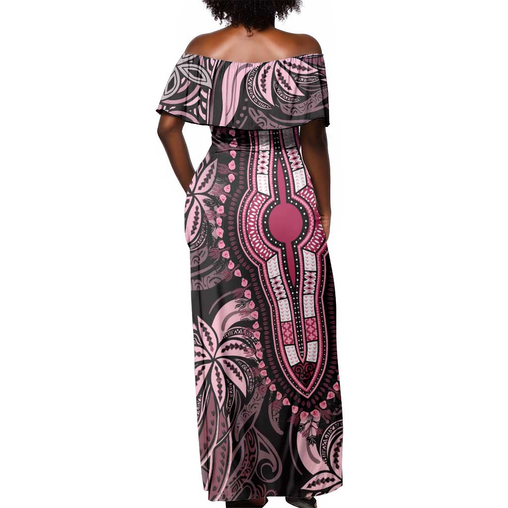 Polynesia Mixed African Dashiki Off Shoulder Maxi Dress Afro-pacific Culture - Pink