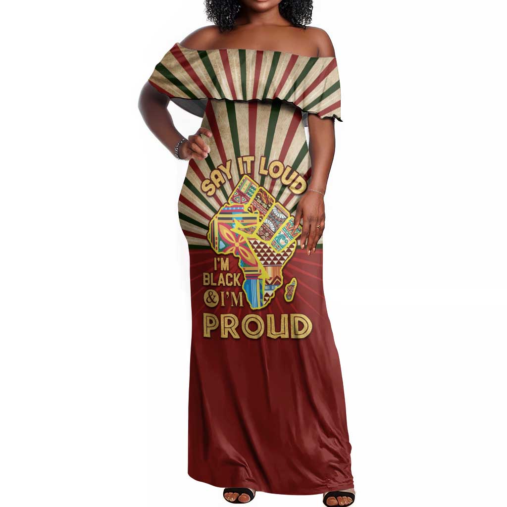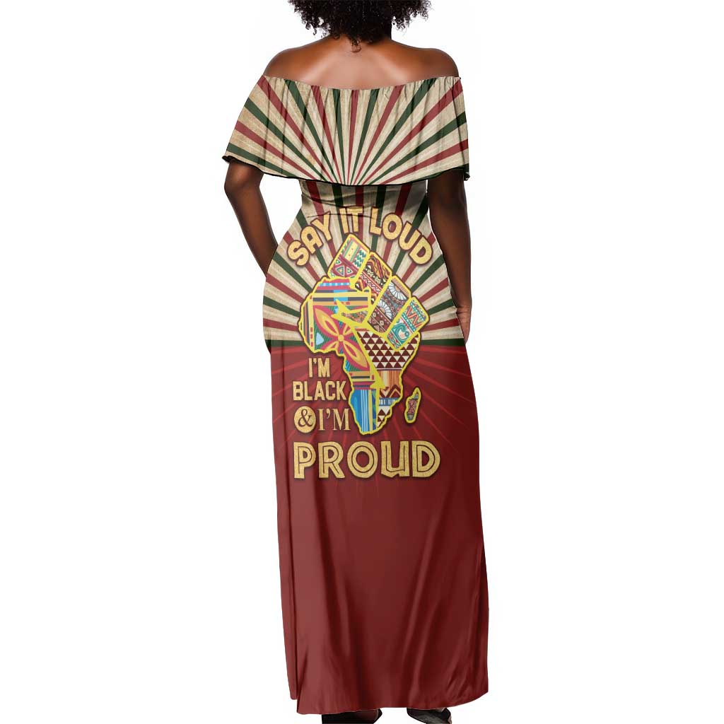 Proud African Off Shoulder Maxi Dress - Hand Up Africa Map Art
