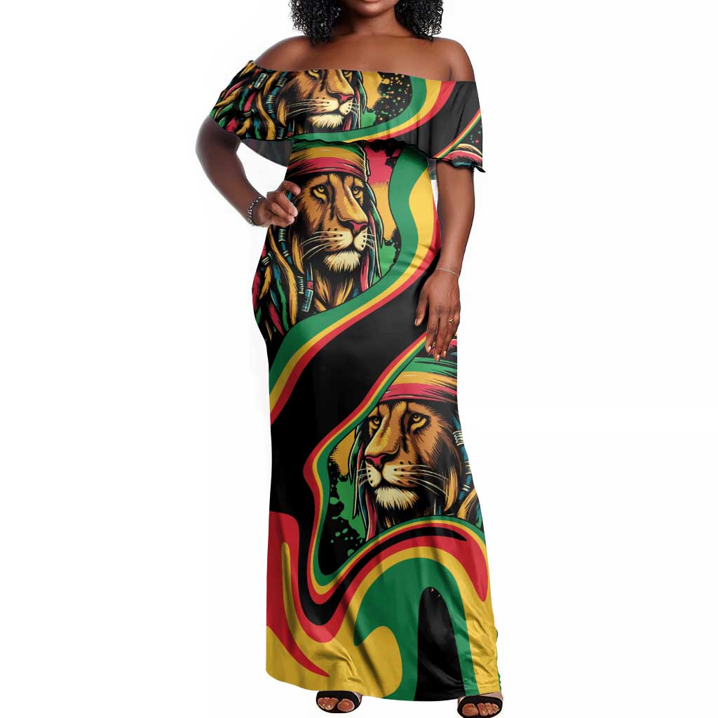 Proud Afro-Jamaicans Rasta Lion Off Shoulder Maxi Dress Reggae My Soul
