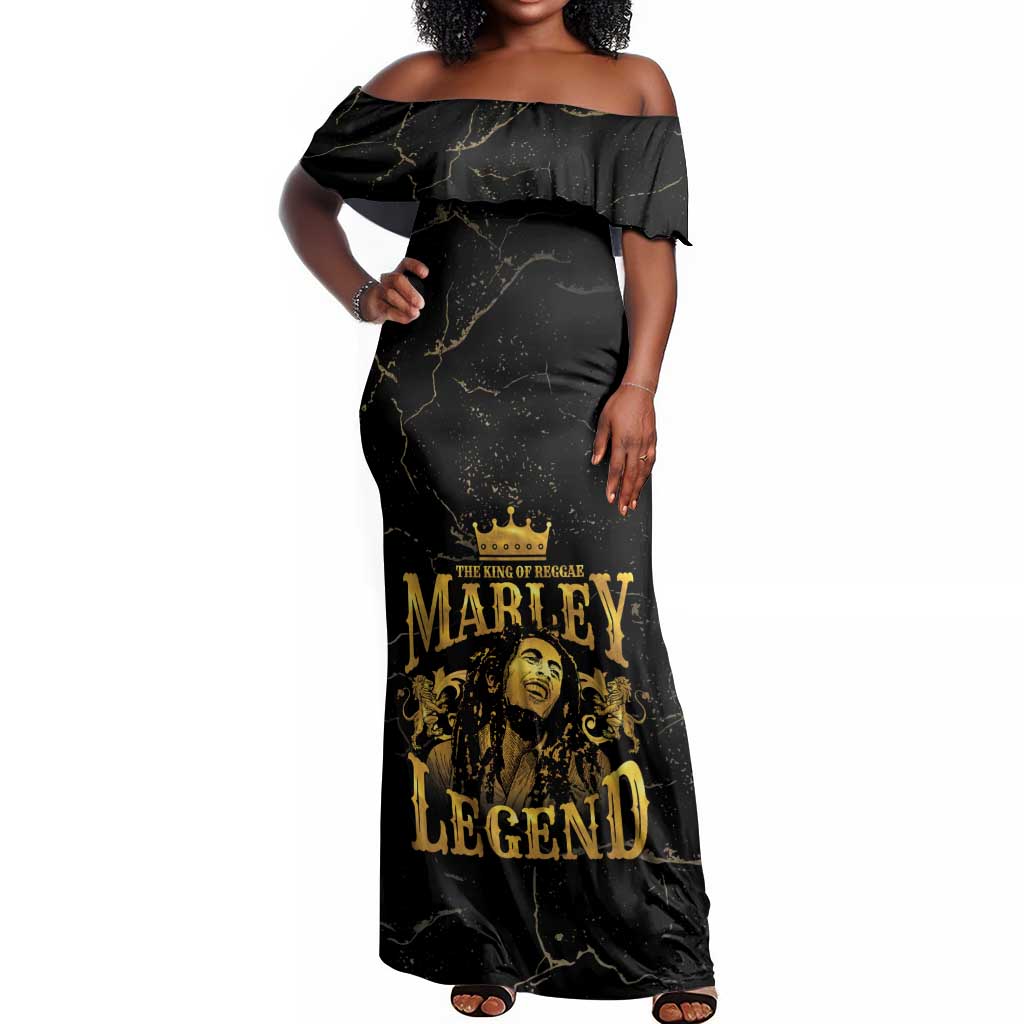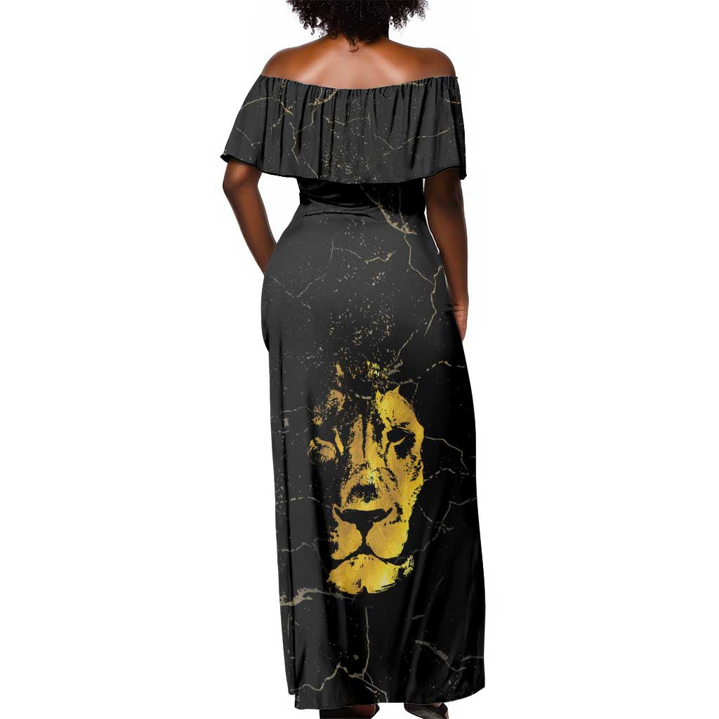 Reggae King Marley Off Shoulder Maxi Dress Gold Lion