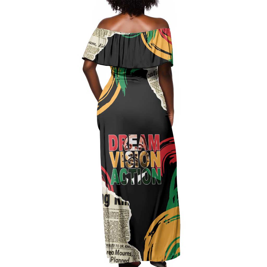 Remembering The Legacy Of MLK Off Shoulder Maxi Dress