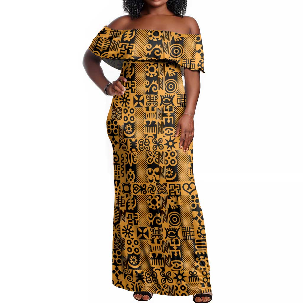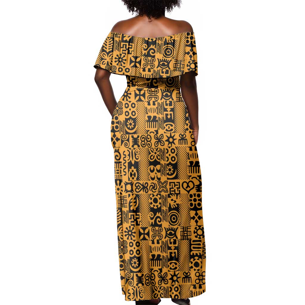 West African Yellow Art - Adinkra Culture Off Shoulder Maxi Dress