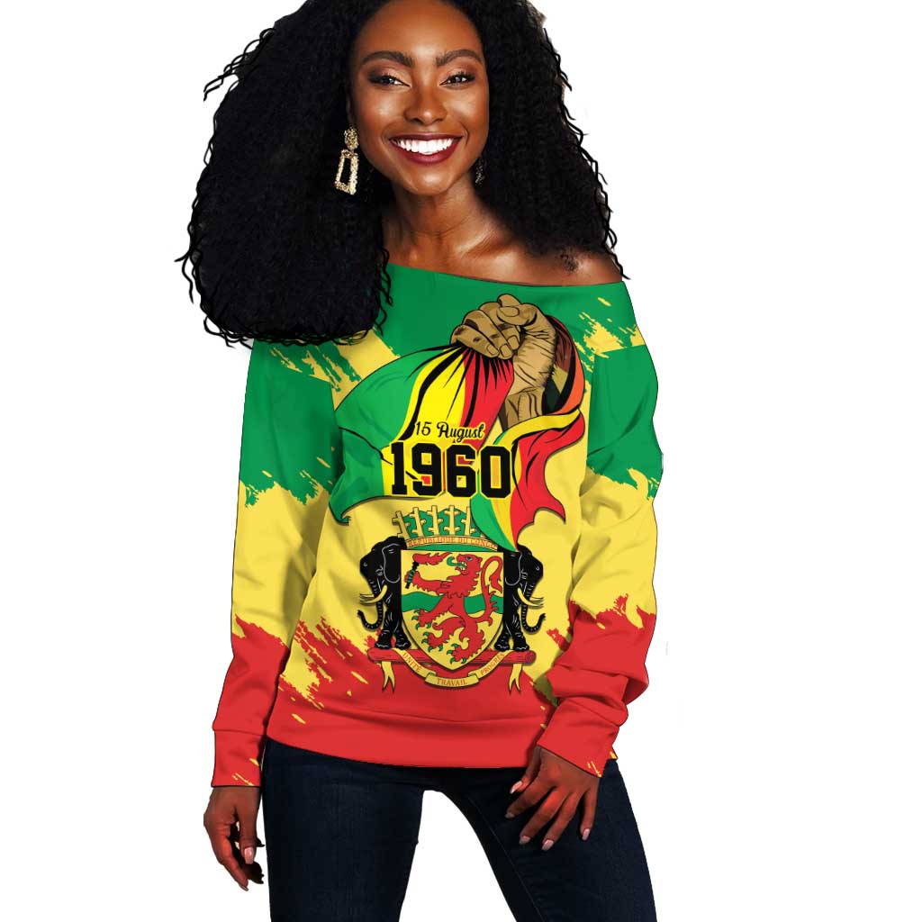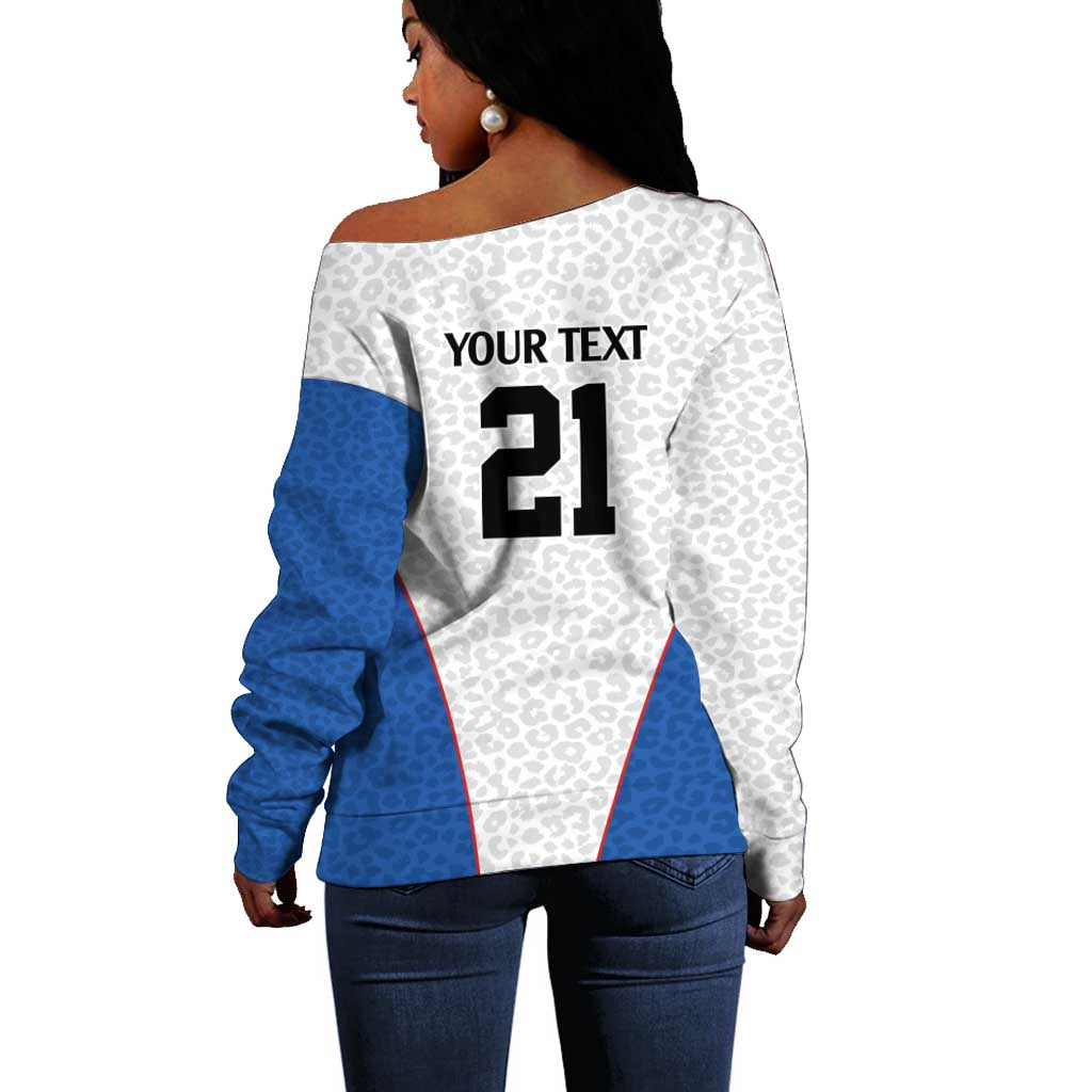 Africa DR Congo Football Custom Off Shoulder Sweater White Leopard Skin Pattern